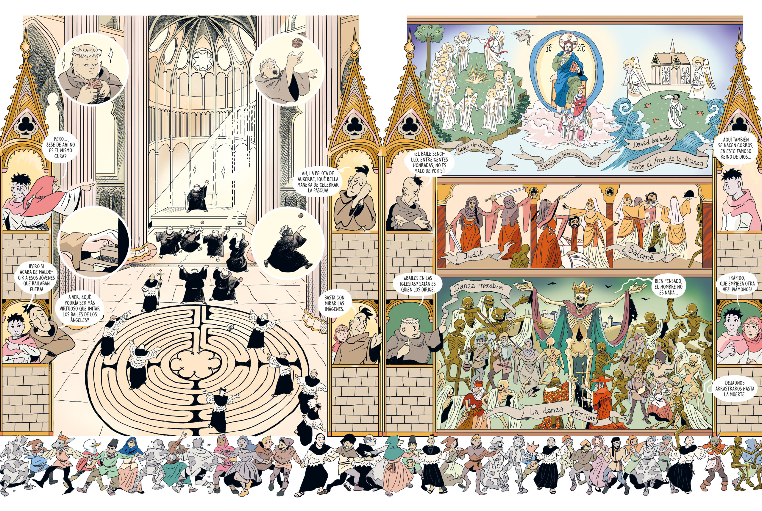 Andrea y Camille, protagonistas e hilos conductores de este cómic, viajan a través de las épocas para experimentar en su cuerpo la evolución del movimiento. Buscarán el trance en los ritos griegos de Dioniso, se ocultarán tras máscaras en la antigua Roma, participarán en los ballets de la corte francesa de Luis XIV. En un largo viaje rebosante de encuentros y anécdotas recorrerán lugares emblemáticos como la Ópera de París, los Teatros Imperiales Rusos o la escena neoyorkina de la segunda mitad del siglo xx. Vivirán el nacimiento del vals, del ballet romántico, de la danza contemporánea e incluso del hip hop, y acontecimientos que supusieron grandes cambios en el arte, desde la Revolución francesa a la Segunda Guerra Mundial, o la epidemia del SIDA. Siempre con la obsesión de expresarse plenamente a través de la danza, se cruzarán con ilustres bailarinas y coreógrafos, como Marie Taglioni, Marius Petipa, Isadora Duncan y Pina Bausch, y con otras muchas figuras imprescindibles, pero menos conocidas, como la bailarina romana Galeria Copiola o Louis-Julien Clarchies, antiguo esclavo que acabó siendo director de orquesta durante el mandato de Napoleón.